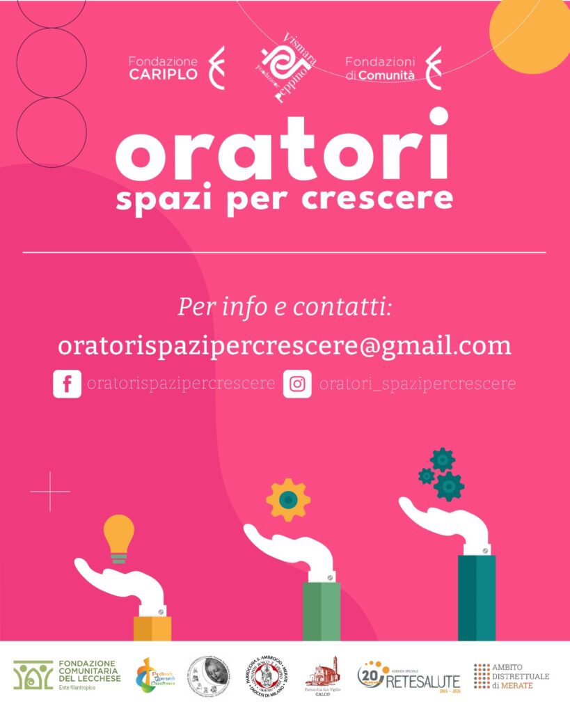 ORATORI: SPAZI PER CRESCEREScritto da chiesadicasatenovo Lascia un commento PROGETTO CONDIVISO-BANDO CARIPLO C.S._KICK-OFF_SPAZI-PER-CRESCERE_CARIPLODownload Percorso_Affetività_CALCO_DEFDownload